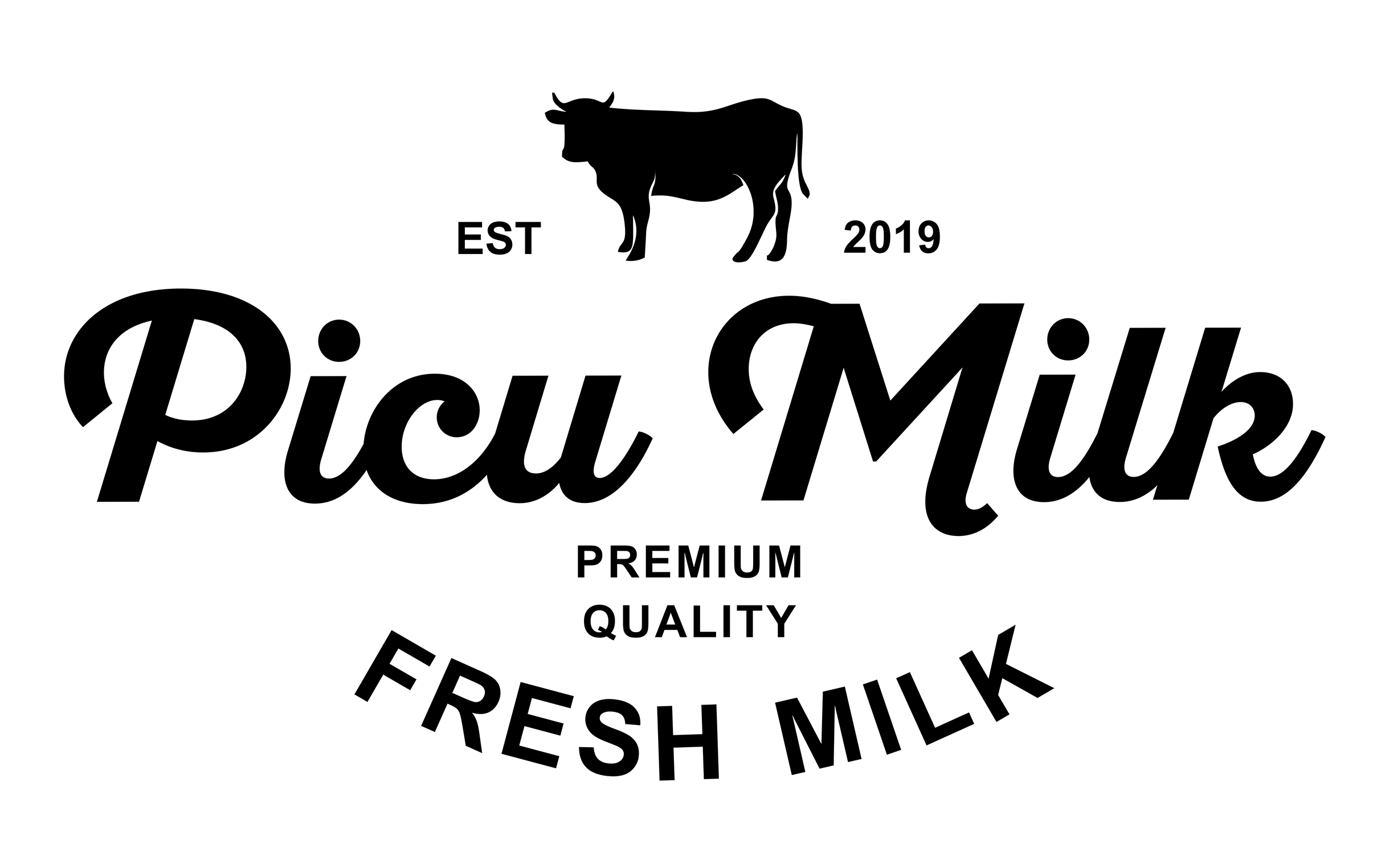 Desain logo brand franchise Picumilk unit usaha minuman susu sapi aneka rasa dan varian, versi pertama yang telah dipatenkan.